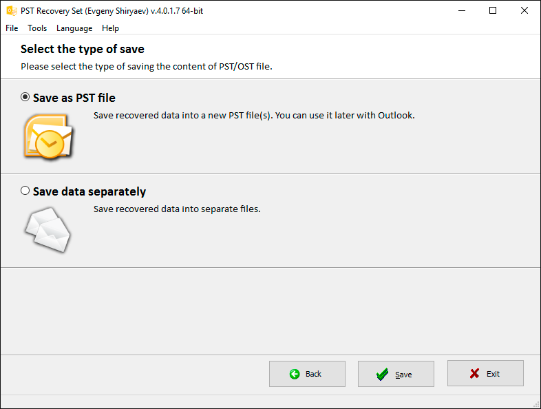 The PST Recovery Set is designed for restoring data from damaged Microsoft Outlook PST files, such as stored emails, contacts, notes, tasks, appointments, meetings, attachments and other data.